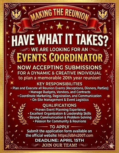 Introducing “Making the Reunion” our search for an Event Coordinator to help bring this milestone celebration to life.
